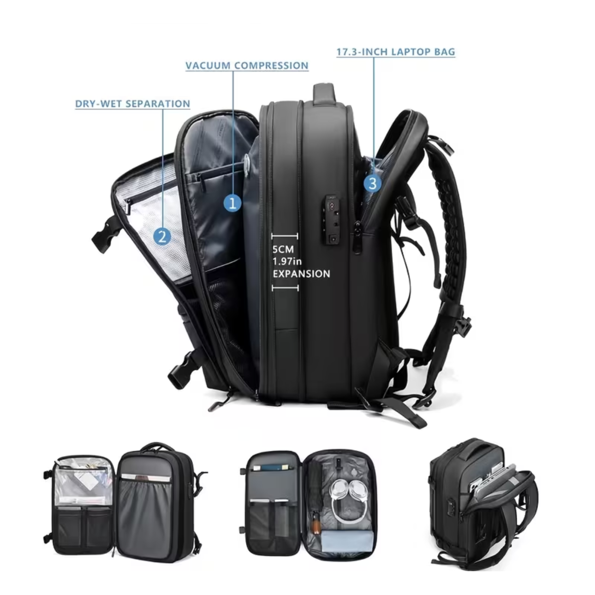Contrairement aux sacs à dos traditionnels, ce sac à dos à compression sous vide comprime vos affaires pour économiser de l’espace, réduire le volume et faciliter le transport.